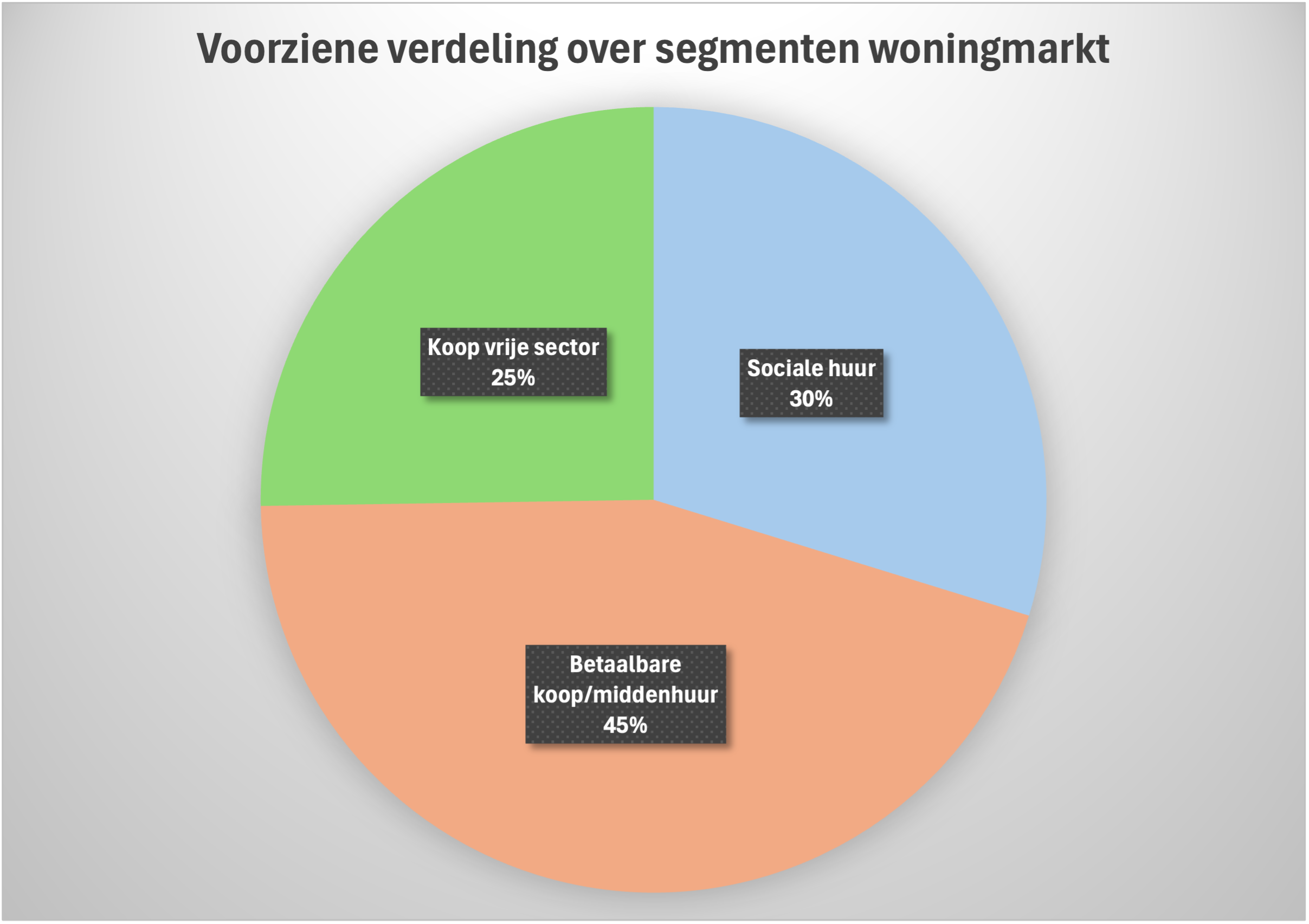 - In de betaalbare middensector worden meer woningen voorzien (45%) dan de Woonzorgvisie voorschrijft (37%).